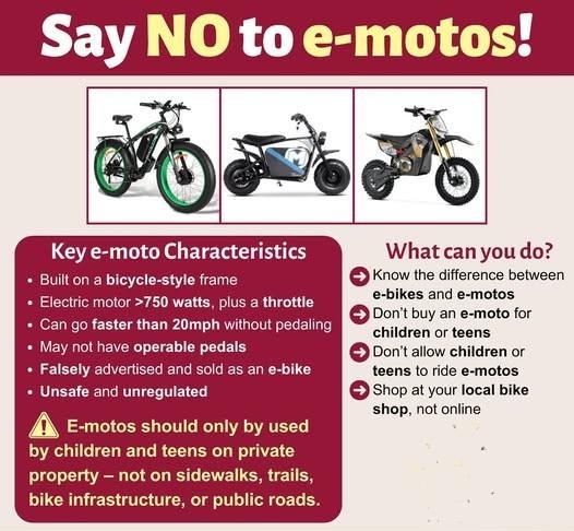 No. Data as of October 2024 on the Marin’s Health and Human Services Bicycle Safety Dashboard reveals 85% of all 911 bicycle crashes for ages 10 to 15 were e-bike related; the e-bike crash rate for 10 to 15-year-olds is 5 times higher than any other age group. These severe injuries are similar to those involving motorcycle crashes, such as concussions (even when wearing a helmet) and broken pelvic bones with long-term or permanent consequences.  Additionally, E-Bike and E-Scooter crashes have been increasing exponentially every year. 56,844 e-scooter injuries in 2022, up from 8,566 in 2017. 23,493 e-bike injuries in 2022, up from 751 in 2017.