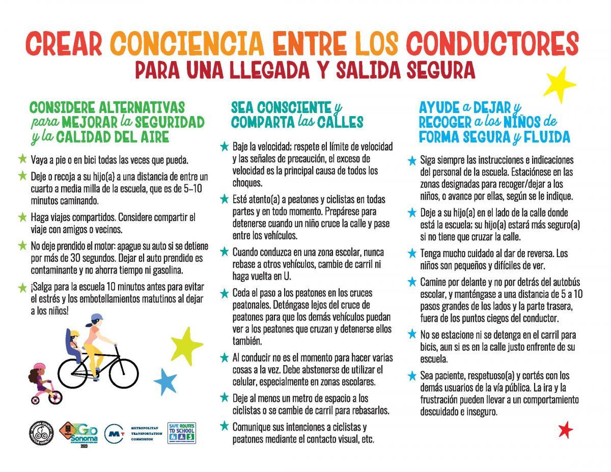 The following handouts may be posted on school/district websites, sent home via email or backpack mail, attached to school newsletters, passed out at events and more to promote bicycle & pedestrian safety and/or the benefits of walking, bicycling, and reducing traffic/emissions to your school community. Preview thumbnails below, then click on the highlighted English and/or Spanish text to download handouts or, in some cases, customizeable Word documents.
